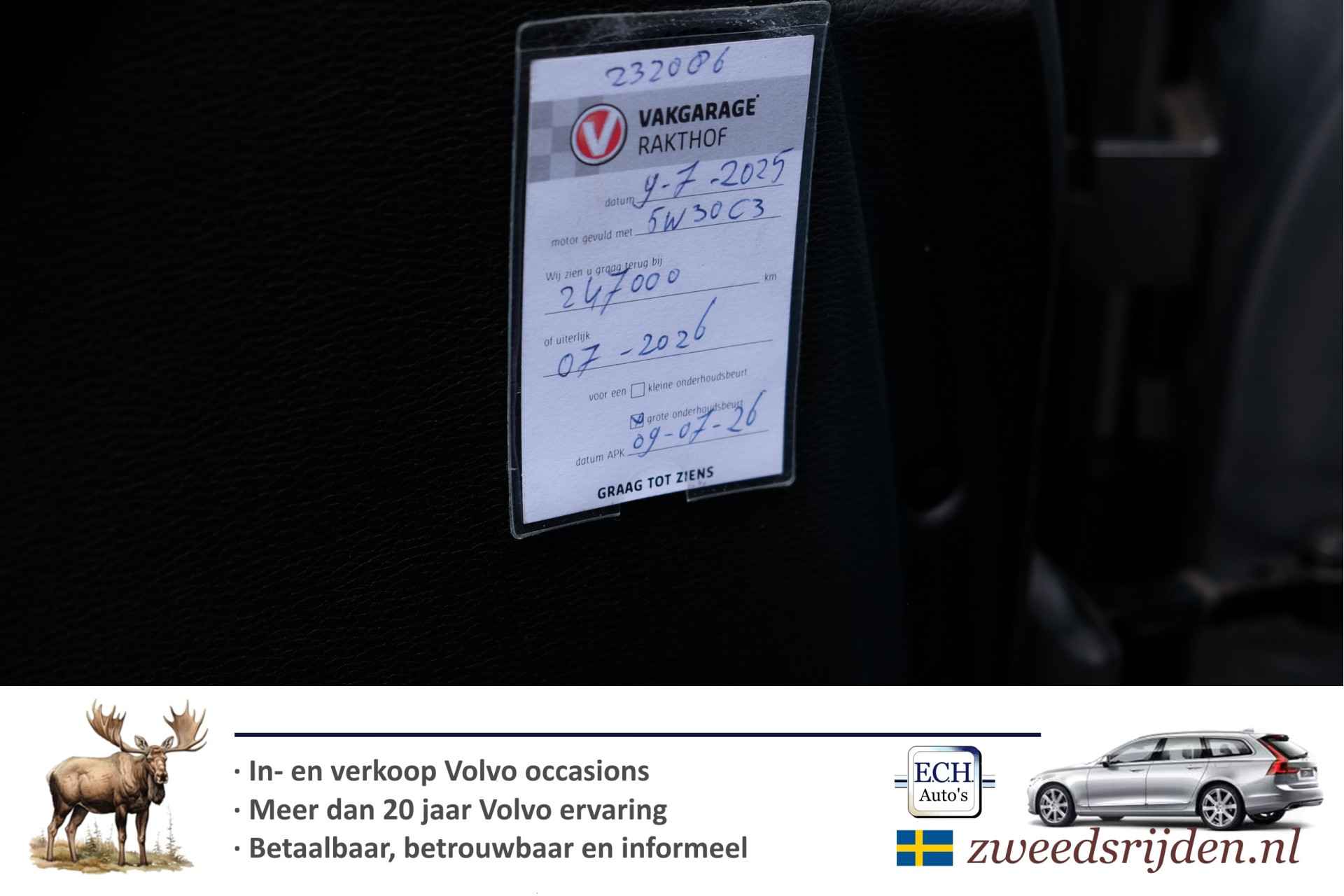 Wij berekenen geen verplichte afleverkosten. Wel adviseren wij altijd een "Zweedsrijden afleverbeurt" te doen. Met meer dan 20 jaar Volvo ervaring weten we waar de zwakke plekken zitten en hoe we deze Volvo optimaal kunnen afleveren. Extra mogelijkheden zijn altijd mogelijk zoals het monteren van een trekhaak, inbouwen van stoelverwarming of het inbouwen van en parkeercamera. Tevens is inruil bij ons mogelijk. Voor een uitgebreide fotoreportage van deze auto kunt u ook op onze website terecht. Voor meer informatie en/of een proefrit kunt u ons altijd bellen op: 0528 795250