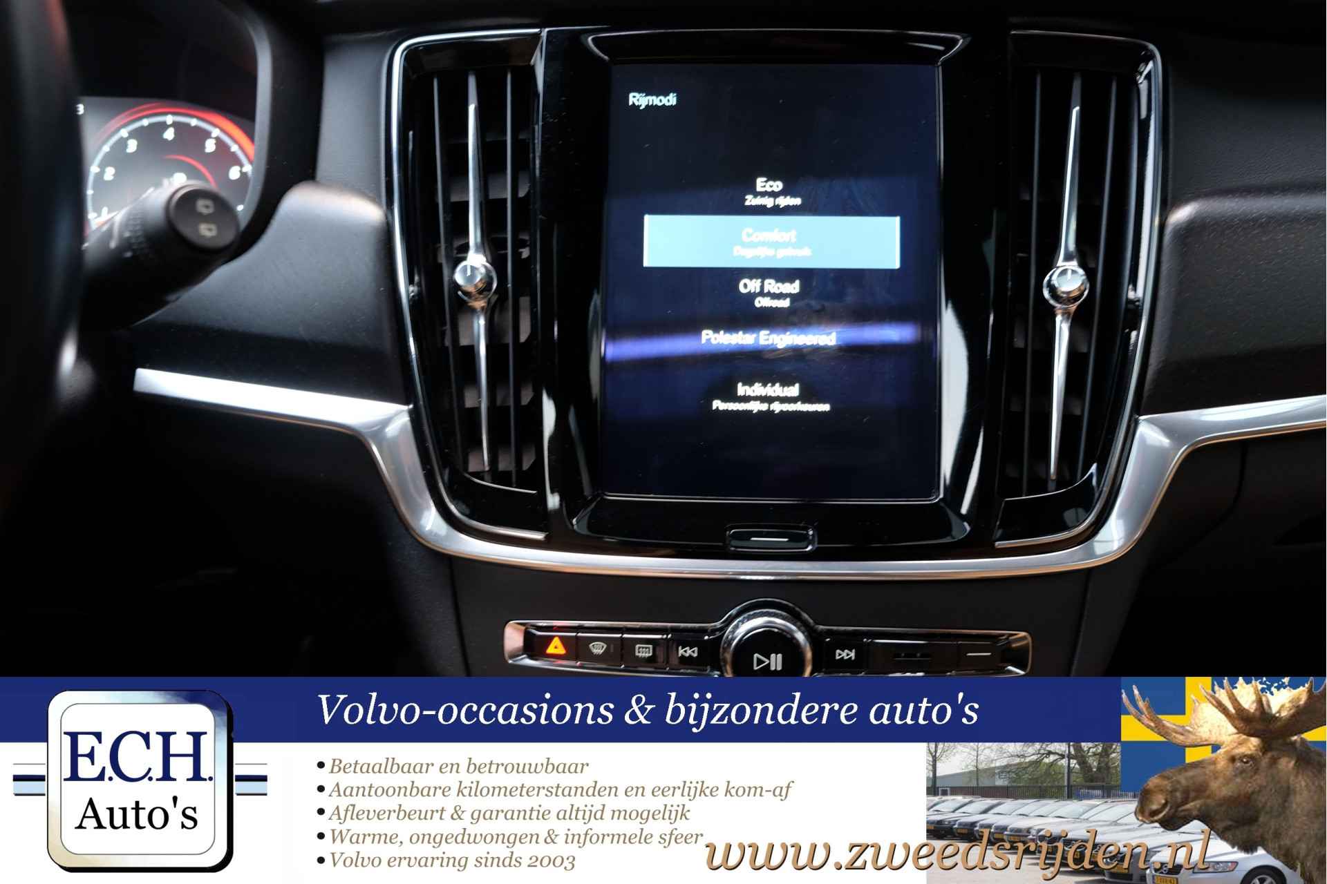 Prachtig uitgevoerde Volvo V90 Cross County met veel opties. Zoals adaptieve CC, dodehoek detectie (BLIS), Bowers & Wilkins audio, Panoramadak, Leer, Head-up display, Elektr. verstelbare stoelen, 360 graden camera, 4 zone airco etc. Tevens voorzien van de officiële Polestart Engineered software, waarmee het vermogen en koppel iets toeneemt. Heeft een trekgewicht van 2500 kg!